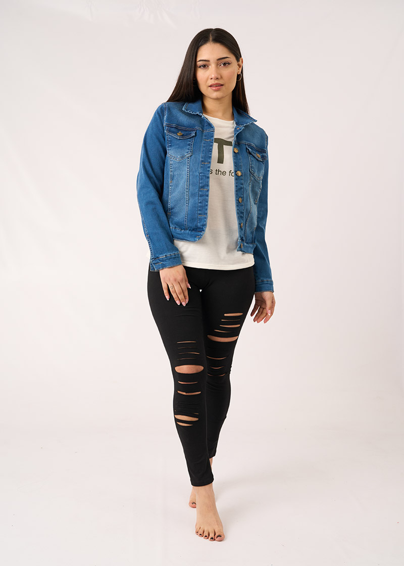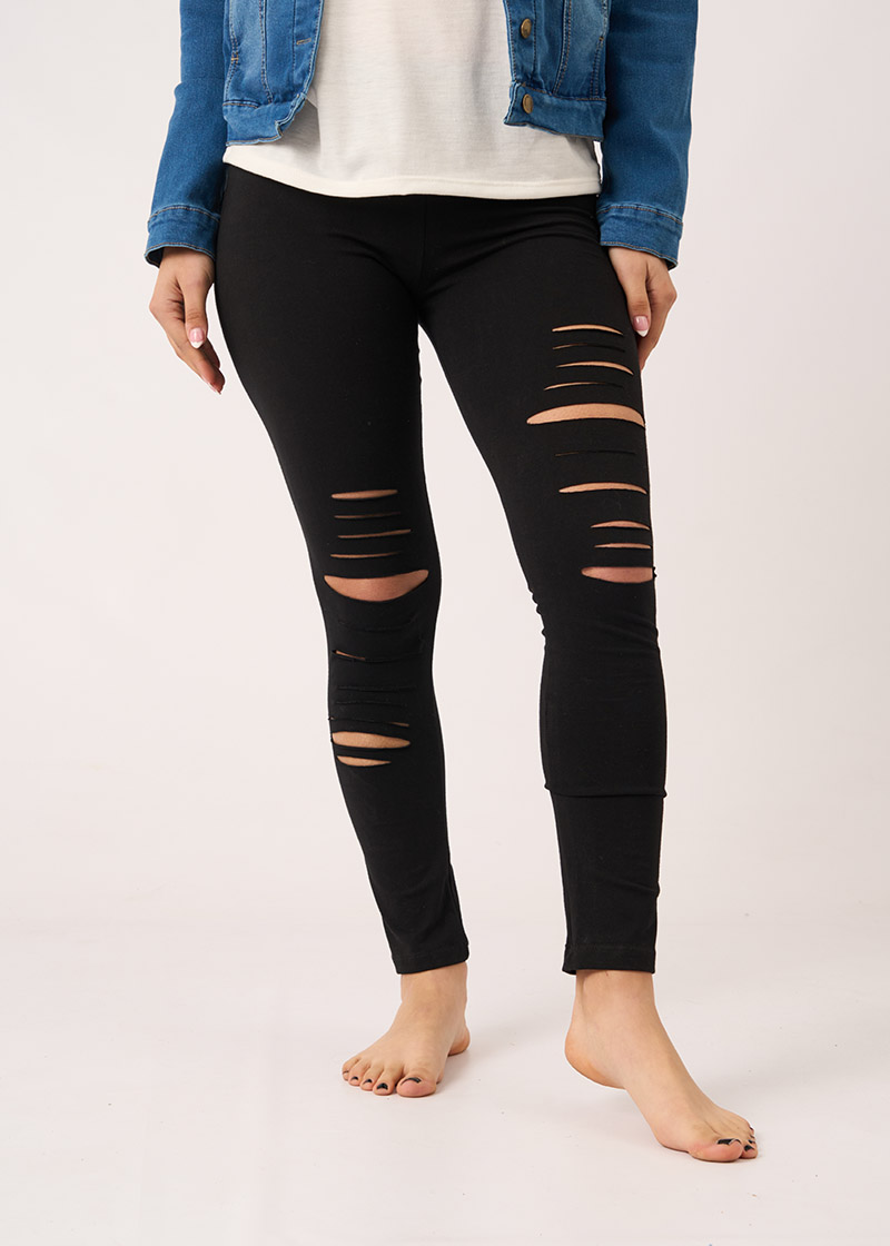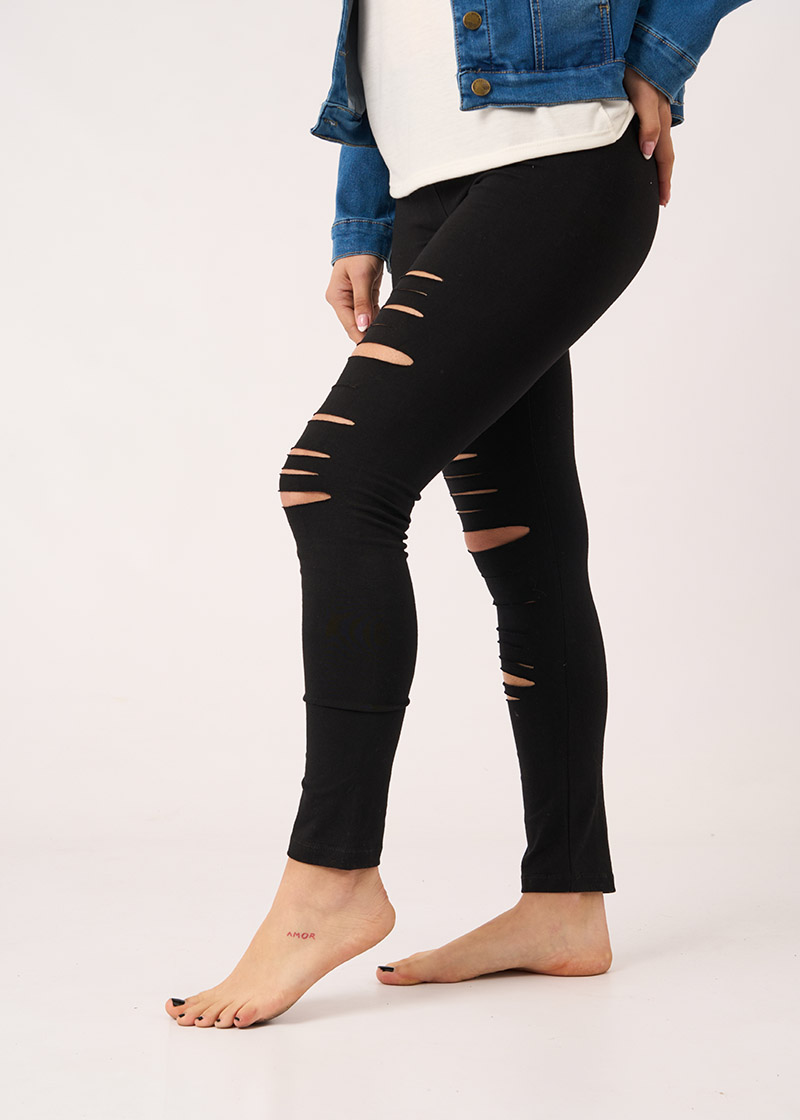 Calza larga de algodón con lycra con tajos en las piernas, cintura con elástico de 3 cm.