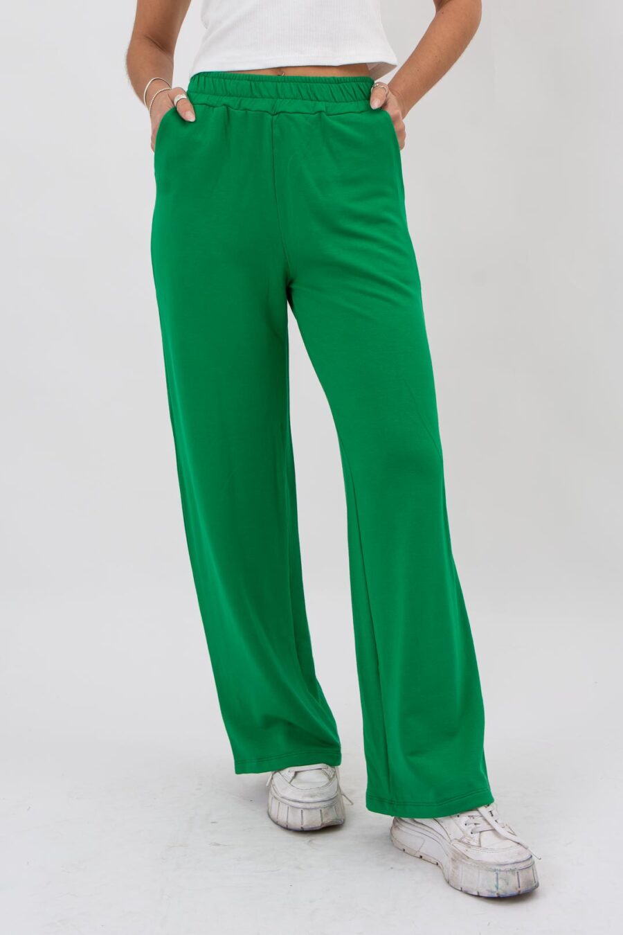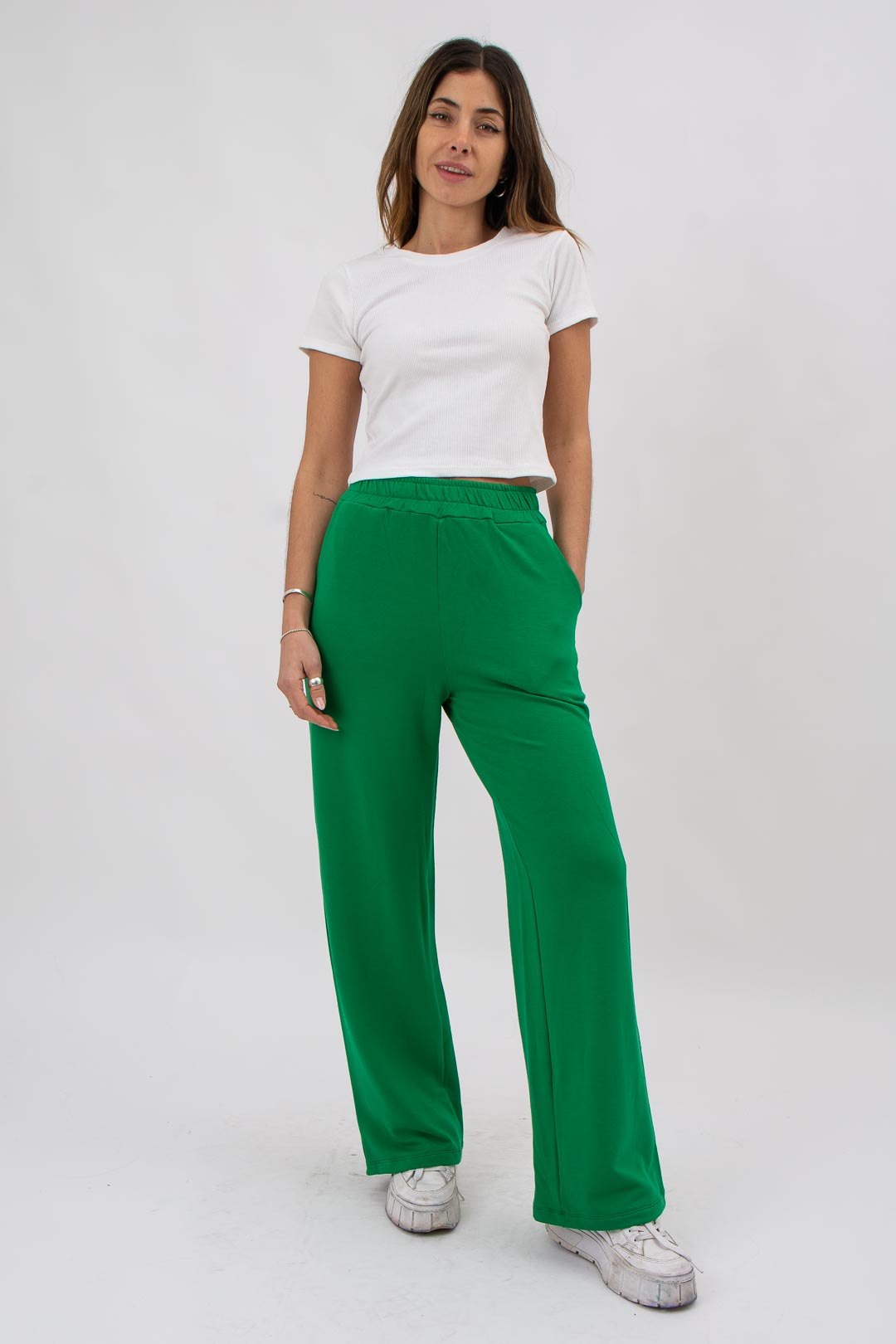 Pantalón de viscosa con friza con bolsillos en el delantero. Tiene cintura con elástico.