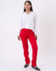 Pantalón recto de vestir de cotton satin con bolsillos delanteros y traseros decorativos. Tiene cintura ancha dividida con pespunte en tres partes, lleva tres botones y cierre pequeño. Tiro medio.