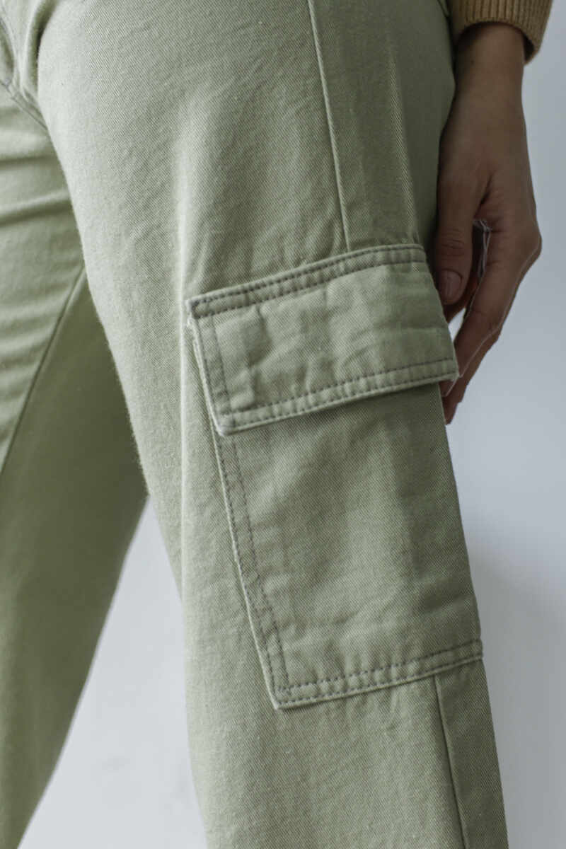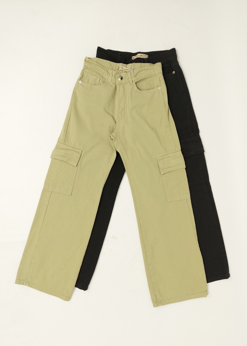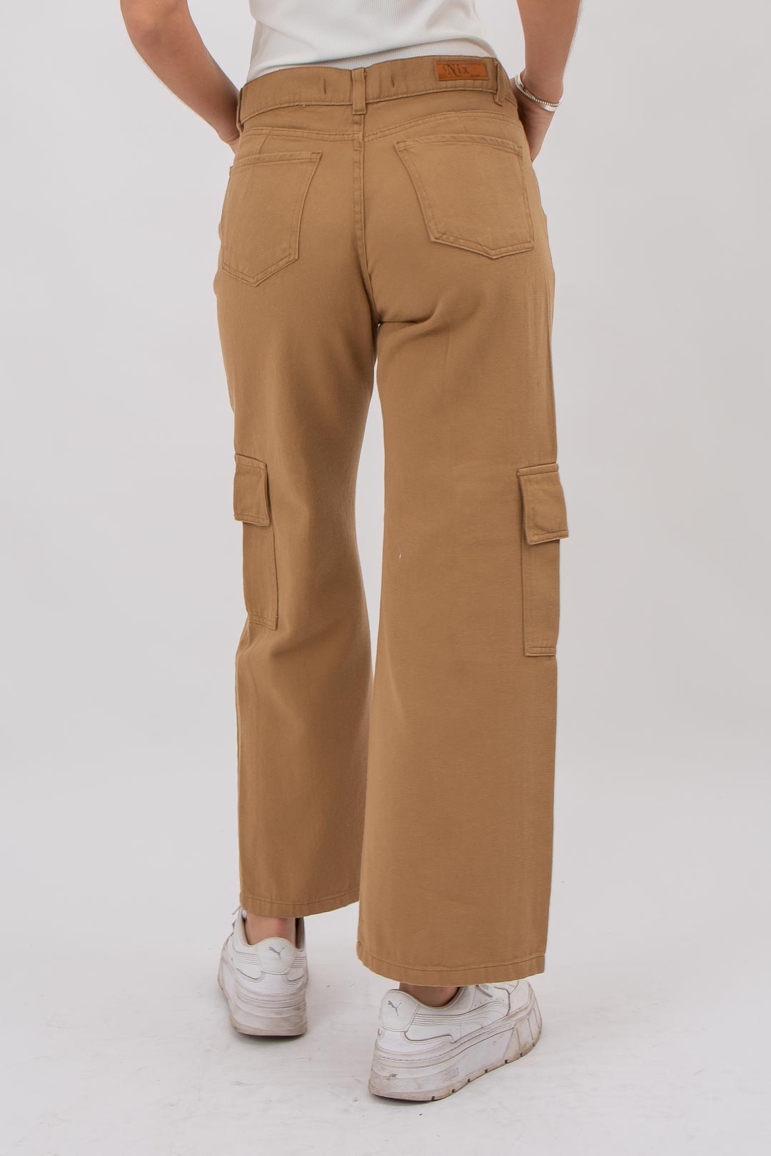 Pantalón gabardina piernas amplias con bolsillos delanteros, traseros, laterales. Tiene pasacinto, cierre y botón.